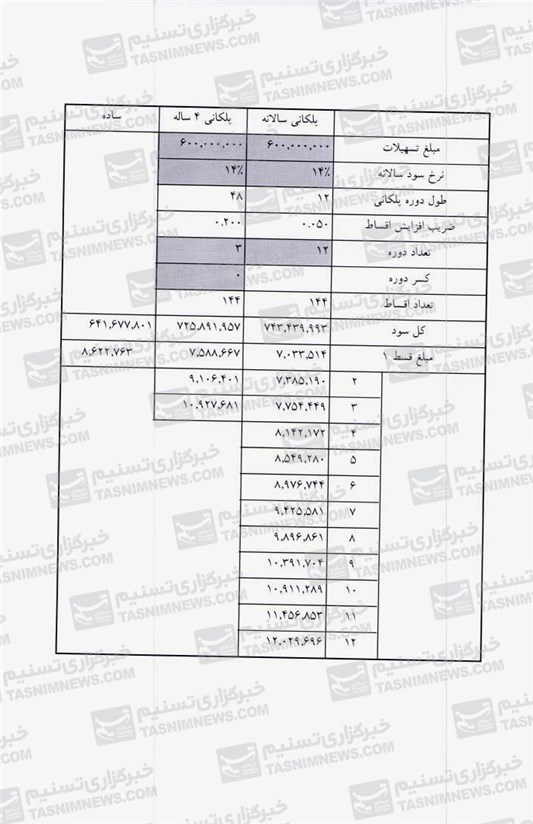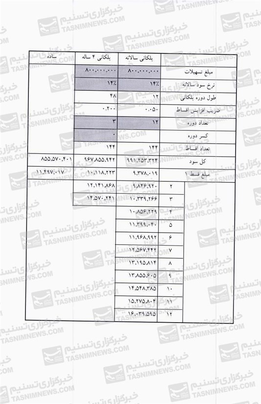 سود 74میلیون تومانی تسهیلات 60 میلیونی