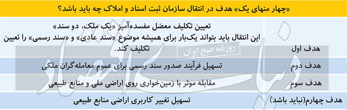 این واگذاری‌‌‌ها در نهایت می‌‌‌تواند آثار مثبتی همچون آسان‌‌‌سازی و اجباری کردن ثبت معاملات  و مالکیت‌‌‌های ملکی، پیشگیری از بروز اختلافات، امکان ثبت مالکیت املاک از سوی مالک بدون اتلاف وقت و همچنین جلوگیری از معاملات پنهانی، تقلب و کلاهبرداری را به همراه داشته باشد. در این مقاله نیز، موضوع اعتبار شرعی اسناد عادی در کنار عدم اعتبار این اسناد در موارد دیگر، مطرح و تاکید شده است که نظام غیررسمی، ضمانت اجرایی نداشته و ثبت رسمی را به بن‌بست ‌‌‌کشانده و منجر به بروز دشواری برای مردم شده است و در نتیجه باید تعیین تکلیف شود. در واقع یک‌بار برای همیشه باید با تدابیری، از طریق انتزاع ادارات اجرایی ثبت از قوه قضائیه و واگذاری هر کدام به دستگاه‌‌‌های زیرمجموعه قوای مرتبط، معضل یک ملک با دو سند حل‌‌وفصل شود. بررسی‌‌‌های «دنیای‌اقتصاد» در این باره نشان می‌‌‌دهد هدف اصلی از این اقدام باید همین موضوع یعنی پایان دادن به معضل یک ملک با دو سند باشد.