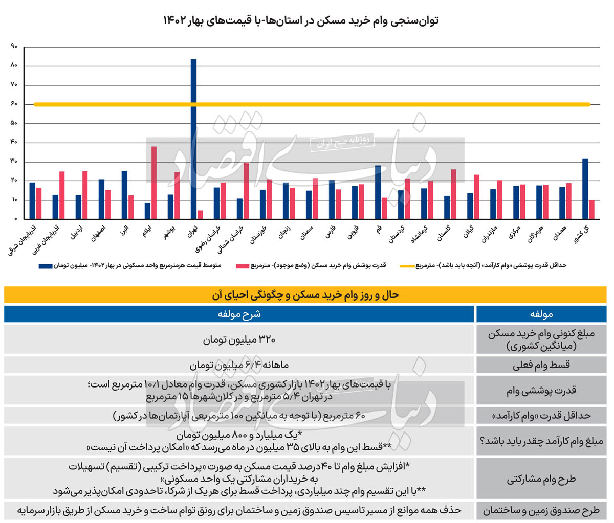 سال گذشته همین موقع، متوسط قیمت هر مترمربع آپارتمان در کشور به ۳۱ میلیون و ۵۰۰‌هزار تومان افزایش پیدا کرد که با احتساب مبلغ وام (میانگین ۳۲۰ میلیون تومان در شهرها)، آن زمان با تسهیلات بانکی فقط امکان خرید ۱۰ مترمربع از یک واحد مسکونی وجود داشت. امروز اما همین قدرت ناچیز وام مسکن، ناچیزتر هم شده است؛ به شکل تاریخی، کمتر از ۱۰ مترمربع. نوروز امسال، سیاستگذار پولی با تصویب «مجوز خاص وام خرید مسکن» به نوعی، «بی‌‌‌اثر بودن تسهیلات فعلی» را تایید کرد؛ چند روز پیش، وام مسکن نخبه‌‌‌ها به ۲ میلیارد تومان افزایش یافت.