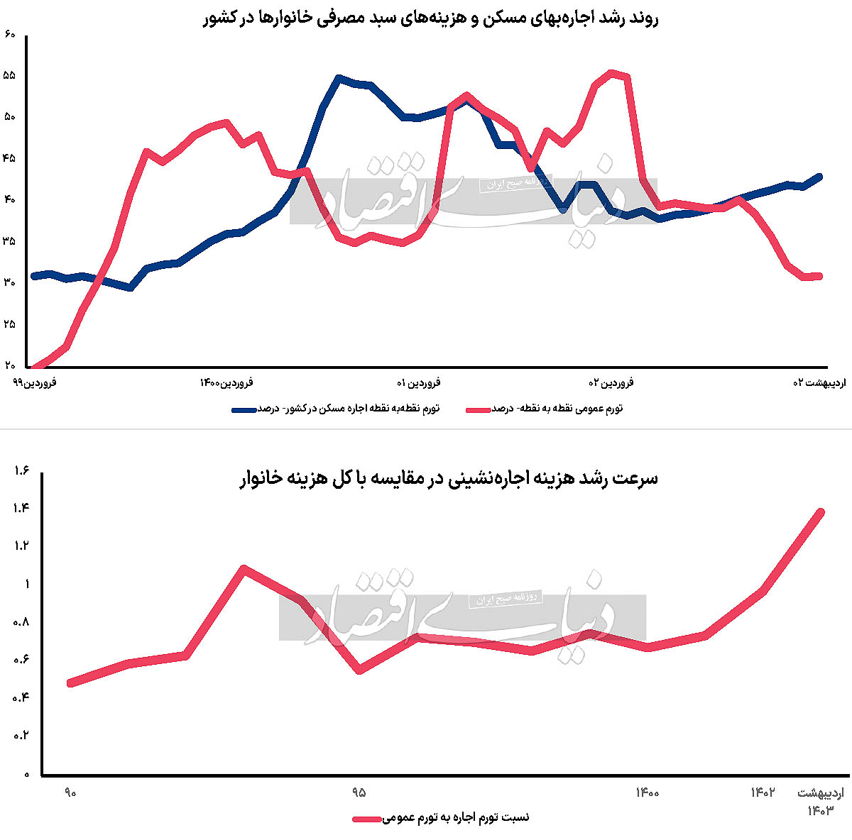 گزارش «دنیای‌اقتصاد» در این باره حاکی است، نسبت تورم اجاره مسکن به تورم عمومی در اردیبهشت امسال به 1.39 رسید. این نسبت تا قبل از نیمه دهه 90، زیر عدد یک بود به این معنا که «سرعت رشد هزینه‌‌های زندگی خانوارها» بیشتر از «سرعت رشد اجاره‌‌‌‌بها» بود اما به واسطه «اثر تورمی جهش تاریخی قیمت مسکن روی تورم اجاره» در سال‌های اخیر، این نسبت افزایش یافت. عدد حاصل از این نسبت در سال گذشته به یک رسید و الان، رکورد جدید زده است. این رکورد یا همان «تشدید گسل بین تورم اجاره و تورم عمومی» نشان می‌دهد، ریشه آن «وقایع درونی بازار مسکن ناشی از وقایع بیرونی است.» به بیان دیگر، جهش قیمت مسکن و سلب قدرت خرید در سال‌های اخیر که ناشی از ریسک‌‌های اقتصادی و غیراقتصادی –متغیرهای بیرونی- بوده اکنون روی بازار اجاره‌‌نشینی اثر گذاشته است.