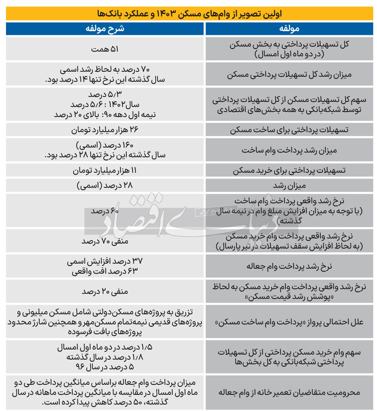 این موارد می‌تواند بخش قابل‌توجهی از 11‌هزار میلیارد تومان وامی که به اسم خرید مسکن در کارنامه دو ماه اول امسال بانک‌ها به ثبت رسیده است را توضیح دهد. در این مدت، حجم پرداخت وام جعاله هم به لحاظ اسمی تنها 37‌درصد افزایش یافت اما با توجه به افزایش 2 برابری این وام در تابستان سال گذشته، در واقعیت 63‌درصد افت کرده است. بانک‌‌ پرداخت‌کننده این وام ماه‌‌هاست به متقاضیان وام تعمیرات خانه، تسهیلات پرداخت نمی‌‌کند یا بسیار محدود پرداخت می‌کند. علت، احتمالا کمبود منابع و اختصاص آن به پروژه‌‌های مسکن ملی است.