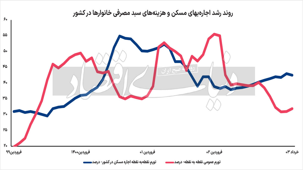 گزارش «دنیای‌اقتصاد» از آمار رسمی مربوط به تغییرات هزینه اجاره‌‌‌نشین‌‌‌ها در سراسر کشور حاکی است، خرداد امسال «تورم ماهانه اجاره مسکن» و همچنین «تورم نقطه‌‌‌ای اجاره»، در سطح کمتری نسبت به اردیبهشت قرار گرفتند. میانگین اجاره‌‌‌بهای کشوری در ماه آخر بهار 2.2‌درصد نسبت به ماه میانی افزایش یافت، در حالی که اردیبهشت ماه، 2.6‌درصد نسبت به فروردین رشد کرده بود؛ به این ترتیب تورم ماهانه اجاره، نزدیک به نیم واحد‌درصد کم شده است. از طرفی هزینه اجاره مسکن در کشور در خرداد امسال 42.5‌درصد نسبت به ماه مشابه سال گذشته افزایش داشته، این در حالی است که تورم نقطه‌‌‌ای اجاره در اردیبهشت امسال نرخ 43‌درصد را ثبت کرده بود؛ بنابراین رشد نقطه‌‌‌ای اجاره‌‌‌بها نیز نیم‌‌‌واحد‌درصد افت داشته است.