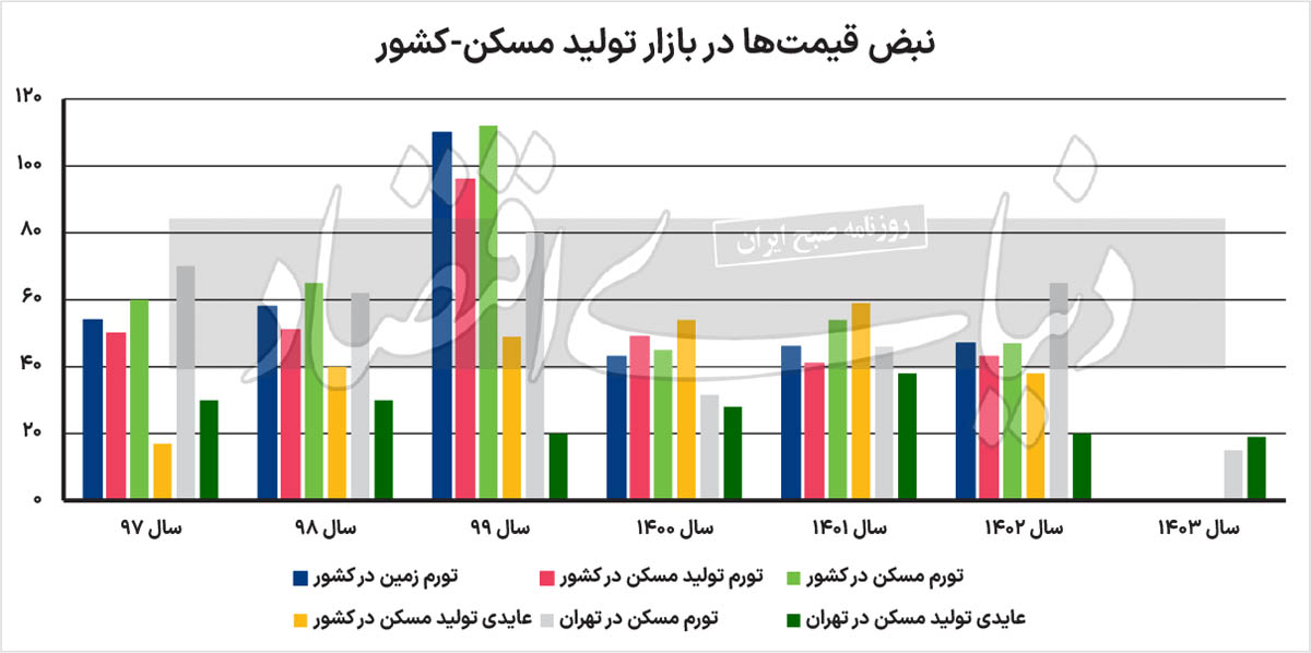 در بازار مسکن شهر تهران، میانگین رشد سالانه قیمت آپارتمان از 97 تاکنون، 52 درصد بوده است. در مقابل، حاشیه سود ساخت مسکن، سالانه به صورت متوسط حدود 27 درصد برآورد شده است. کارگردان اصلی «کاهنده سرعت رشد حاشیه سود ساخت مسکن» در برابر تورم مسکن در این سال‌ها، «زمین» بوده است. بررسی‌‌‌‌های «دنیای‌اقتصاد» از عملکرد ضدتولید بازار زمین حاکی است، طی 6 سال گذشته، متوسط رشد سالانه قیمت زمین در کشور 60 درصد بوده که از رشد سالانه قیمت مصالح‌‌‌‌ساختمانی، بیشتر است. با این حال، نرخ تورم زمین در تهران، به مراتب از کشور بیشتر بوده است که البته علت التهاب بیشتر آن هم می تواند «کمبود زمین خام در پایتخت» نسبت به خیلی از شهرهای کوچک و متوسط باشد. قیمت خرید زمین یا همان ملک کلنگی در تهران از سال 97 تا کنون، میانگین در هر سال 67 درصد جهش کرد. مقایسه این نرخ با حاشیه سود سالانه تولید مسکن، «مقصد سرمایه‌‌‌‌ها» را به شکل طبیعی، از بخش مولد به بازار ملک منحرف می‌کند.